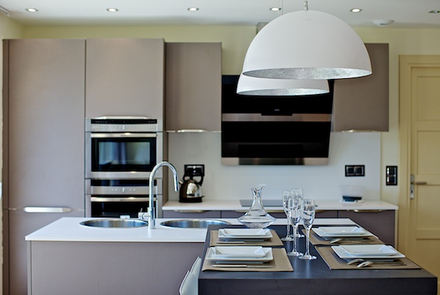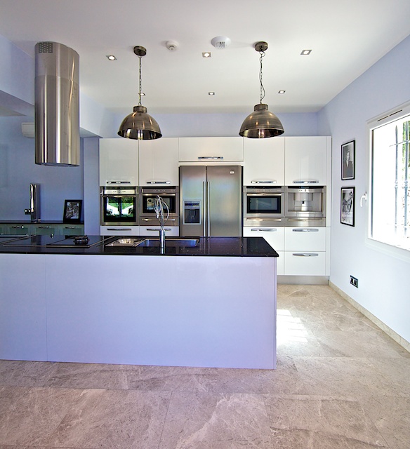 Exceptionnelle cuisine ans cette luxueuse villa de Cambrai. Le laqué blanc des façades, les murs immaculés et l'orientation sud apporte à cette cuisine une clarté incomparable. Le client souhaitait une cuisine fonctionnelle et de nombreux fours (vapeur notamment) dont la symétrie rappelle la cuisine des chefs.