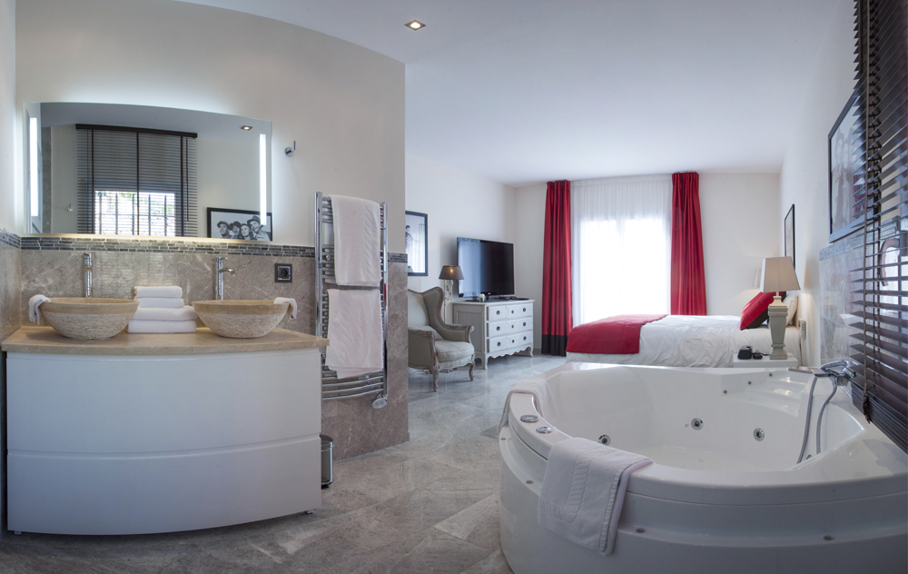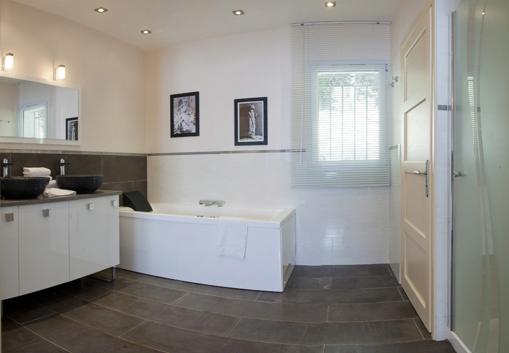 De grands volumes pour cet espace bains qui ouvre sur la chambre parentale de cette belle villa.